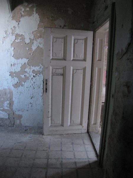 Befalazott ajtó, ami valószínűleg a teljesen külön álló lakrészhez vezetett. (Kívülről nézve a Házat, a jobb oldali, külön bejáratos.)