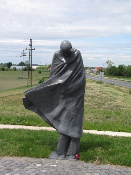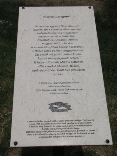 Menetben azért feltűnt, hogy Abda közelében robogunk el. Én visszafelé mindenképpen látni szerettem volna Radnóti Miklós szobrát, hát arra kanyarodtunk.